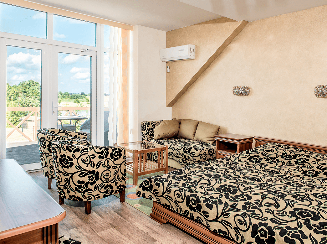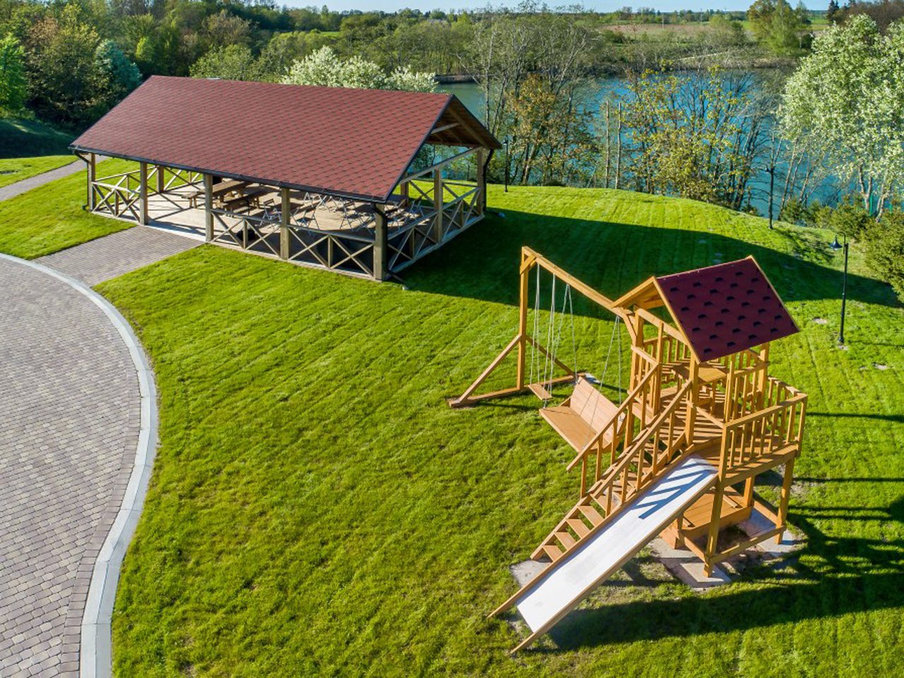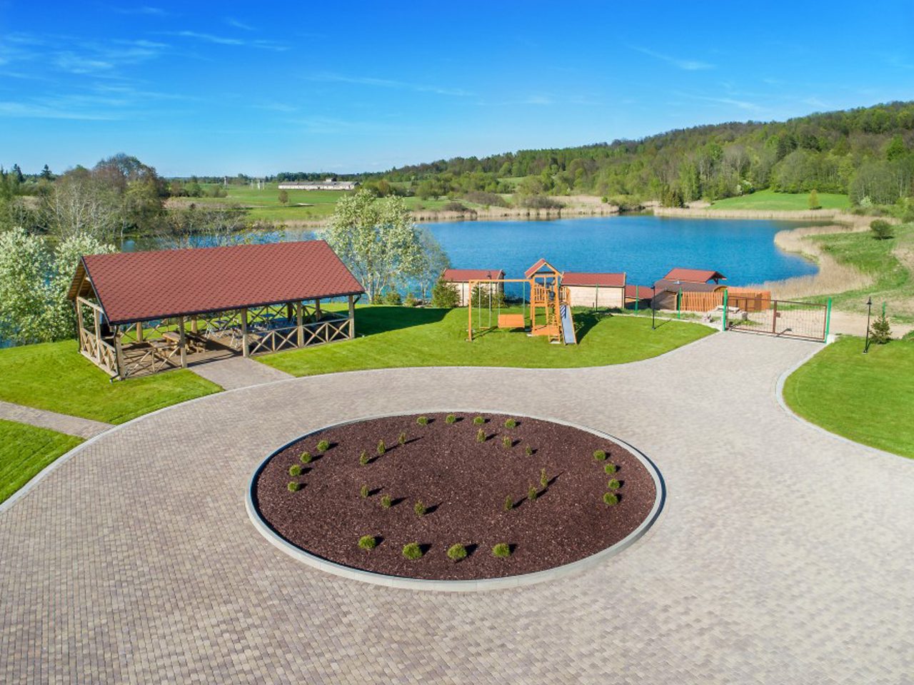 Sodybos teritorija – uždaras kiemas, kuriame rasite erdvią lauko pavėsinę, didelę parkavimo aikštelę bei įvairias aktyvias lauko pramogas. Svečiams siūloma tinklinio aikštelė, pasiplaukiojimas vandens dviračiais, žvejyba, krepšinio lankas, pirties malonumai, vaikų žaidimų aikštelė.
